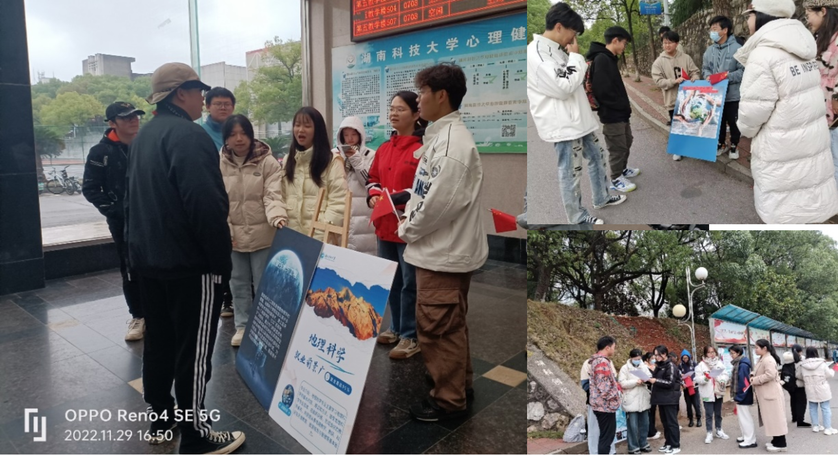 入党积极分子以小组为单位精心准备活动,废寝忘食地收集整理有关科普知识,绞尽脑汁地设计海报。他们分成五个小组在南北校摆点,向全校师生进行科普宣传。即使室外北风呼啸寒冷刺骨,也挡不住他们向过往师生科普的热情。他们积极地向大家介绍自己的专业特色、专业内容以及专业在实际生活中的应用。在宣传中,来自马克思主义秀人网 的同学知道了“3s测绘”的基本内涵;来自土木秀人网 的同学对“智慧城市建设中的地理信息”有了一定的了解。