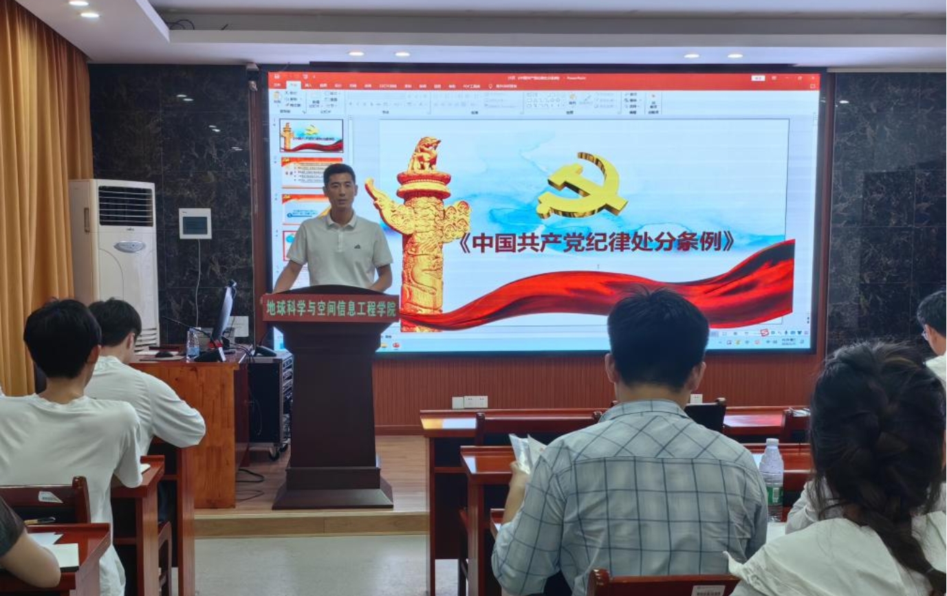 根据党纪学习教育工作安排,为加强各支部党员的纪律教育,提高党性修养,让支部成员做到学纪、知纪、明纪、守纪。2024年5月21日,秀人网 党委副书记崔皓以党纪学习为主题,在地学楼206会议室为地质系、地理系和测绘系三个学生党支部上党课。