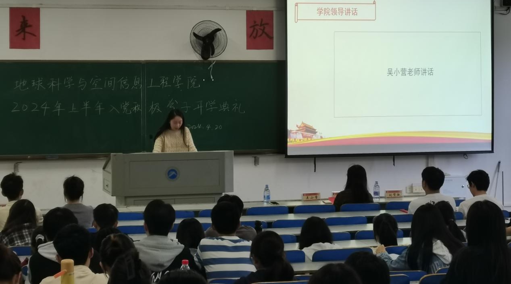 随后,黄港晨老师和吴小营老师分别上台发表讲话。黄港晨老师指出,入党积极分子不仅是一个称号,更是一份责任和义务。前进的路上必不会一帆风顺,希望同学们能够不畏困难,永不退缩。吴小营老师在讲话中表明,身为入党积极分子的同学们要始终坚定理想信念,不断学习党的创新理论,提高对自身修养的要求。