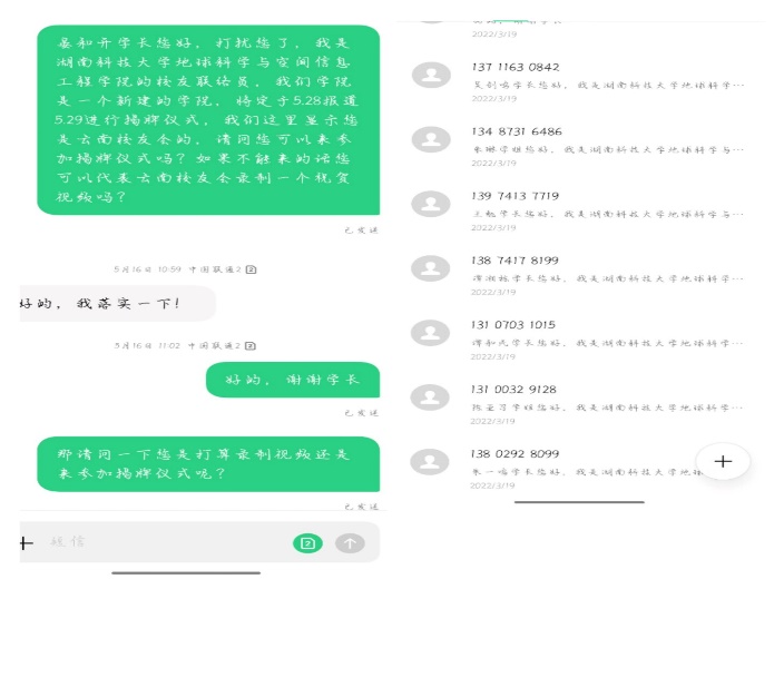 首先是对老校友们通过电话以及发短信的方式进行问候,之后向他们告知地秀人网 的成立并且进行邀请工作,除此之外我们还向各地校友会进行邀请,也接收了四川、云南等各地对地秀人网 成立的祝贺视频。