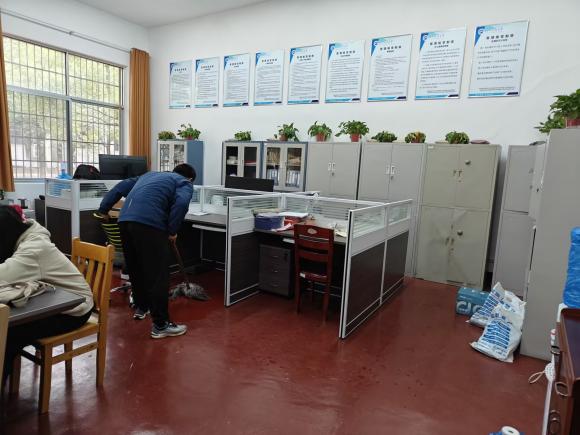▲志愿者打扫办公区