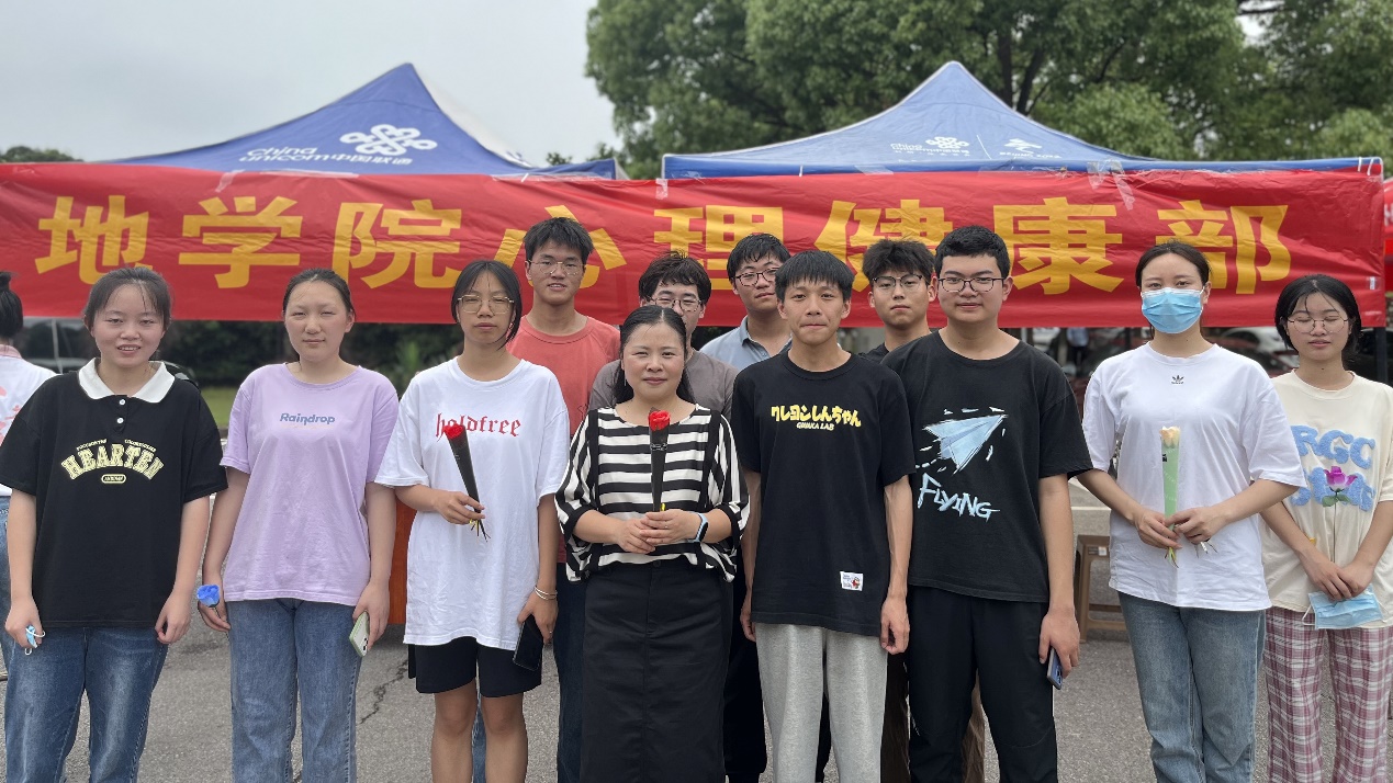为庆祝全国两会的顺利召开,积极响应会议对心理健康和精神卫生的重视,更好地贯彻教育部关于大学生心理健康教育的方针政策,促进学生健康成长和全面发展,在秀人网 两校合并二十周年暨心理健康教育中心成立二十周年之际,秀人网 心理健康教育中心协各秀人网 心理健康部联合开展以“以青春之心,逐理想之光”为主题的第十八届大学生心理健康月系列活动。秀人网心理健康部紧随校心理健康部的脚步,于5月21日在二区美食广场面向秀人网 全体同学开展摆点活动。罗书记和辅导员彭老师非常重视此次心理健康活动,特来到现场视察并且慰问工作人员。