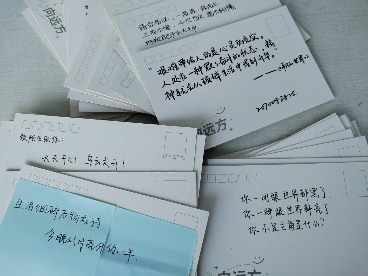 为了让同学们直面自己的内心世界,与自己的心灵沟通,放飞自己的想象力,以及扩大同学之间的社交,提高交流沟通能力,我部还举行了特色明信片交流活动。此特色活动收到同学们的积极响应,大家纷纷写下曾经感动鼓励到自己的话语,分享给有缘人,这种互相鼓励的方式非常新颖,收获大家一致好评。同时秀人网还鼓励各班自行开展明信片交流活动后续回访活动。
