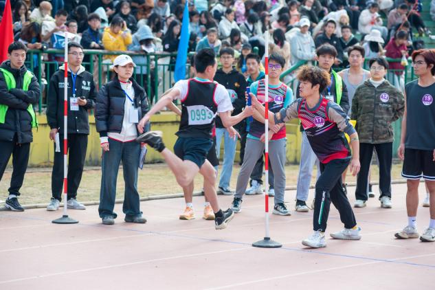 伴随着一声嘹亮的枪响,男子甲组1500m比赛拉开了帷幕,所有人都在一声声“加油”的呐喊中起步向着前方奔去,飞扬的少年最动人心,奔跑起来像是穿过了光阴。一圈,两圈......他们在秋日的暖阳下肆意奔跑,在呐喊的赛场上竞相逐梦。比赛到了最后的赛点,看着蔡科伟逐渐领先并一举冲过了终点线获得了第一名。高成秋也紧随其后获得了第六名的好成绩。