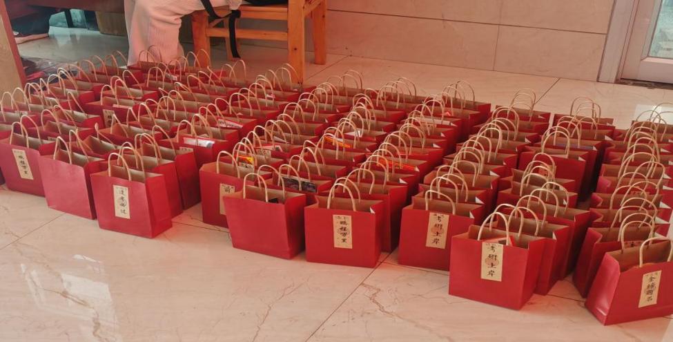 各位老师和同学们精心为备战考研的学子们准备好了相应的礼包,并一一做好标记,贴上不同的祝福标签“鹏程万里”“逢考必过”“前程似锦”等。保证每一位学子都收到的是独一无二的一份礼包,也表明了秀人网 对每一位考研学子独有的关心。礼包使用红色的手提袋,寓意着“红红火火”;礼包包含了旺旺饼干、暖宝宝、甜橙、许愿瓶等小礼品,每一个都饱含着老师们的殷殷祝福:预祝每位学子都胜利在“旺”,心想事“橙”;一份暖宝宝表达了老师们温暖的陪伴与关心,一个许愿瓶体现着老师们坚信每一位学子都会所愿皆成,一战上岸。