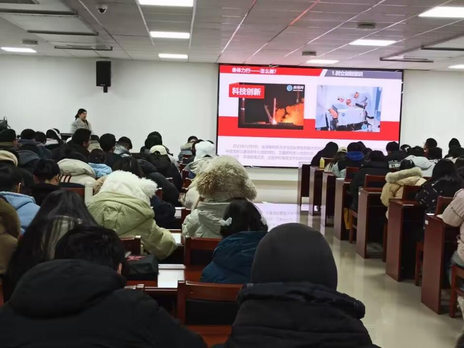 潘路老师先给同学们介绍了什么是“大学生创新创业大赛”,并详细讲解了其赛制;随后,从国家和个人层面出发,解答了“我们为什么要重视创新”,以及“我们该如何实现创新”等问题。潘路老师还以“湖科大一号”卫星为例子,向同学们说明了“创新就在我们每个人身边”,鼓励同学们积极参加创新创业活动。其生动描述,使同学们对大学生创新创业有了更加清晰直观的认识。