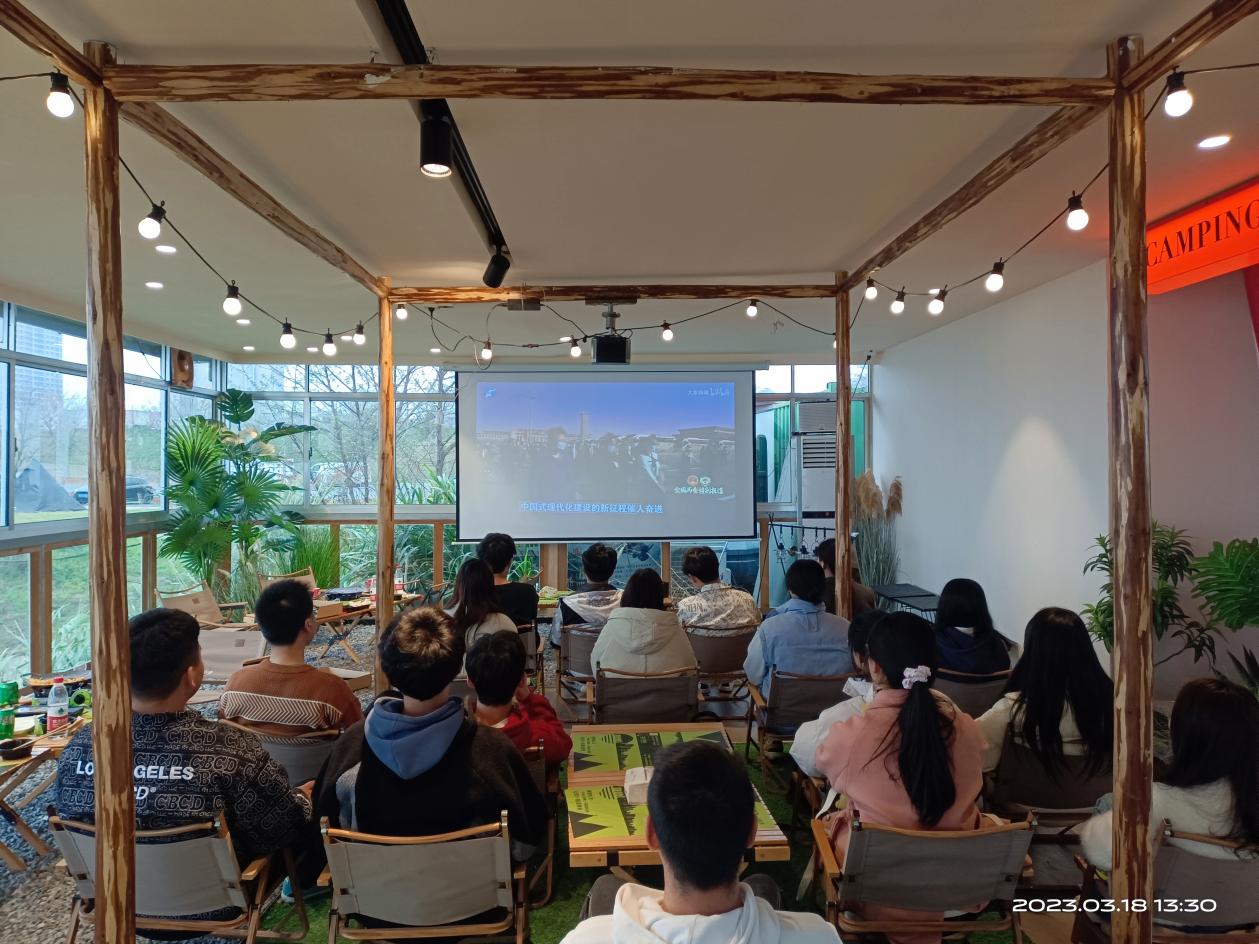 室外春雨绵绵、万物复苏,室内同学们聚精会神收看两会实况,交流心得。正是青春奋斗的年龄,两会的胜利召开与韶华的年纪碰撞出智慧的火花。作为党建部门第一次大团建,此次活动不仅让大家了解两会动态,领悟两会精神,也更好地增进了党务部门之间的了解,对新加入的小伙伴更无疑是一次难得的学习好机会。