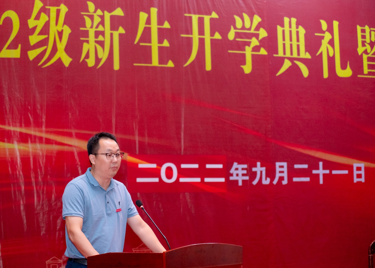 党委书记龙四春、党委副书记罗玺,副院长戴德求、陈新跃出席,教职工代表及22级本科生、研究生参加,典礼由院党委副书记罗玺主持。
