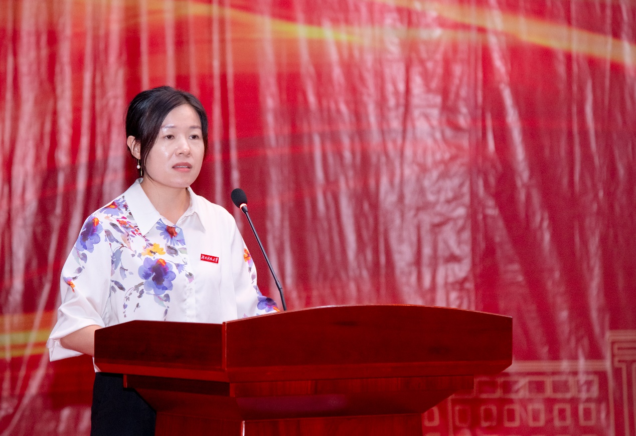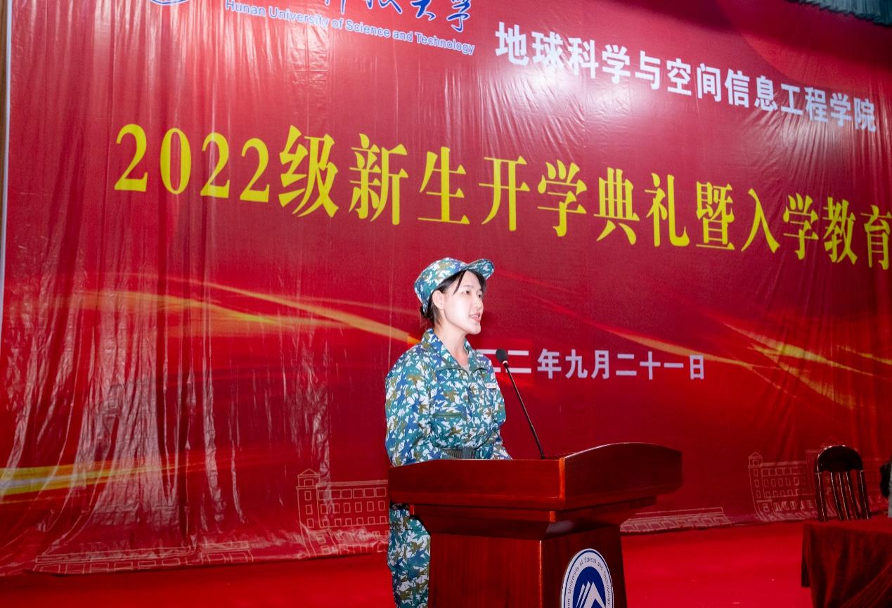 22级新生代表石佳宁在发言中表示,大学四年是同学们青年时代的开始,韶华如金,脚下的路要靠自己去选择,她立志要和同学们携手共进,做自己人生的掌舵者,承担起肩上的家国责任。