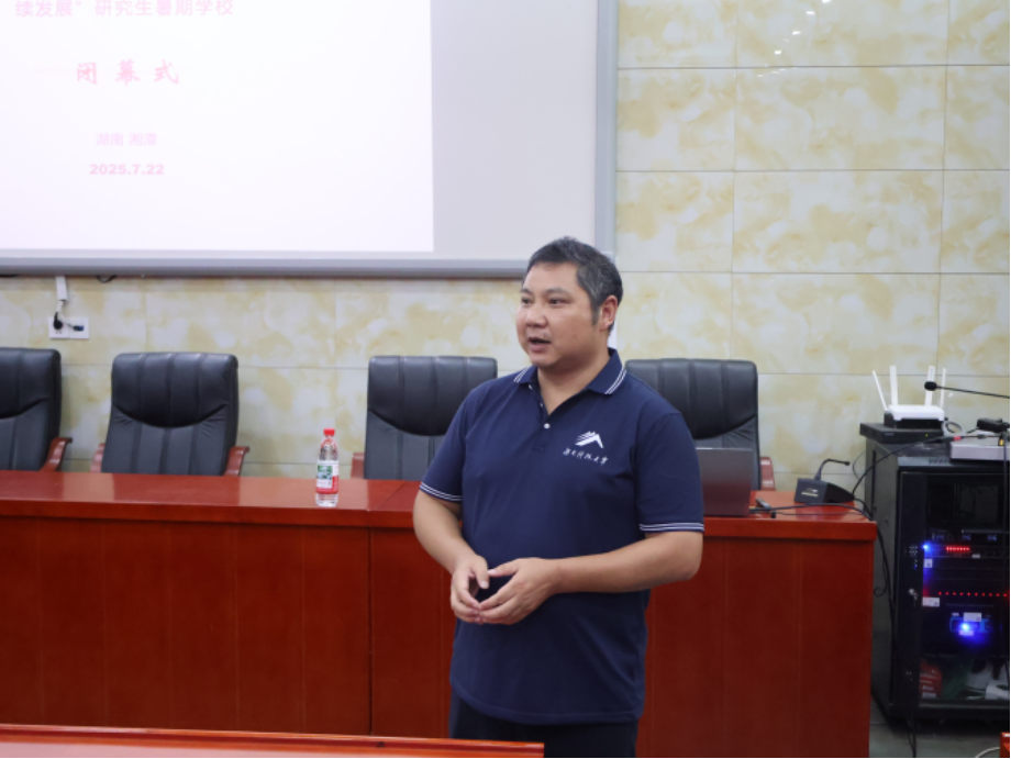 7月22日下午,由湖南省教育厅主办、秀人网 研究生院(部)、秀人网 (以下简称“秀人网 ”)承办开展的为期半个月的“新时代地质资源勘探、开发与可持续发展”湖南省研究生暑期学校举行结业典礼。秀人网 副院长陈新跃,秀人网 党委副书记崔皓,秀人网 23级兼职辅导员王承志和暑期学校全体学员出席从此次结业典礼。
