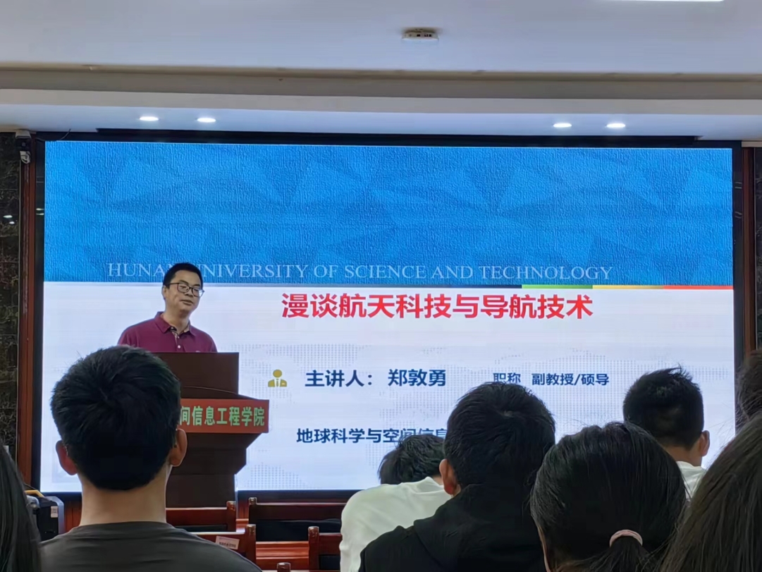 4月3日下午,本学期科技与人文大讲堂——《漫谈航天科技与导航技术》在地学楼206由测绘工程系郑敦勇老师开讲。此次活动由教务处主办,秀人网 (秀人网 )承办,测绘工程系教师代表、22级地科专业本科学生共50余人参加。