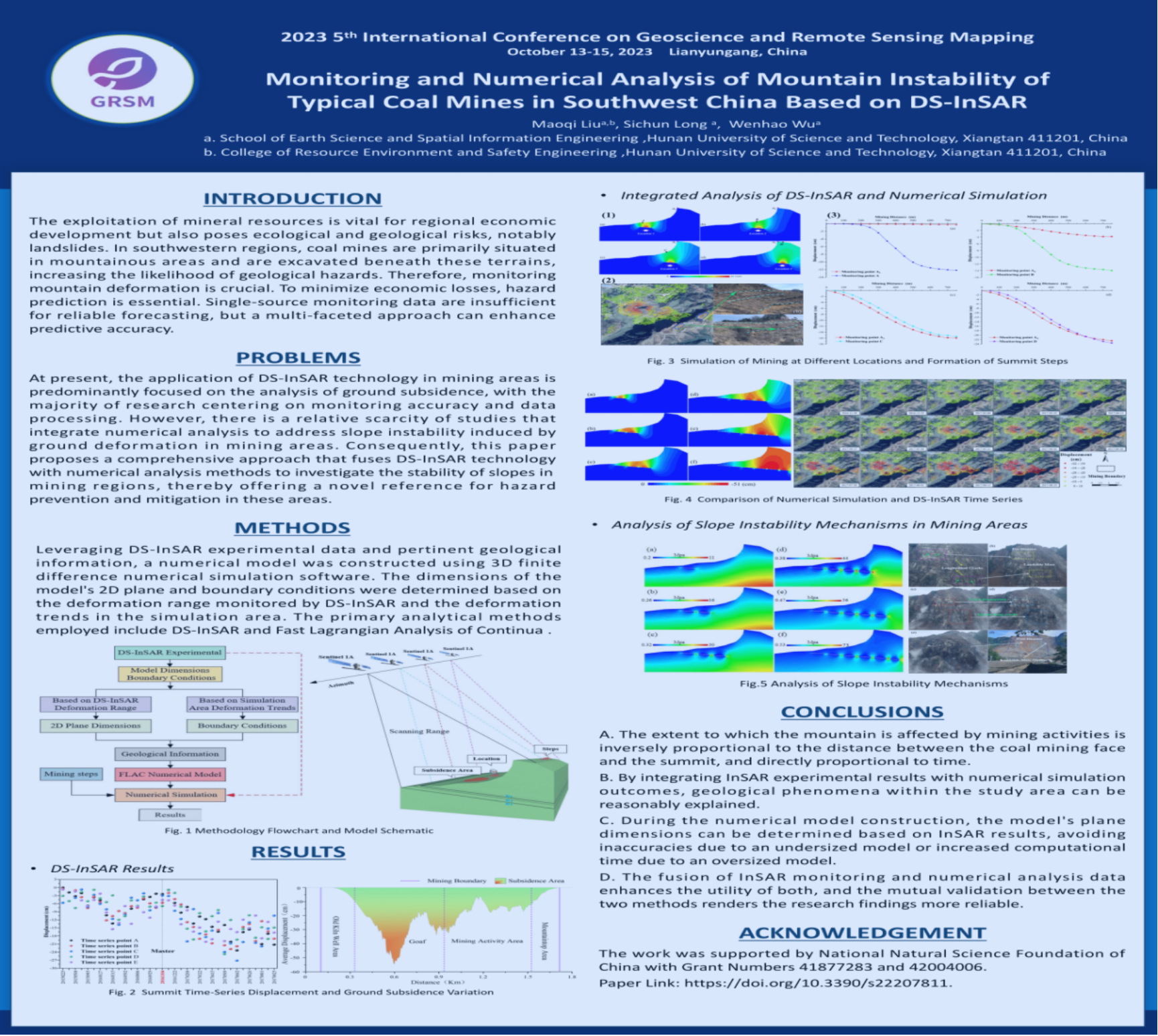 大会共设置1个主会场和“遥感与测绘”、“信息采集与应用技术”、“环境监测与应用”、“地理科学与环境”4个分会场。秀人网吴文豪副教授、林东方副教授分别在“遥感与测绘”、“信息采集与应用技术”分会场做了主题报告,由于口头报告数量限制,博士生代表刘茂琪、龙四春团队研究成果作为大会海报展示、并进行了交流发言。