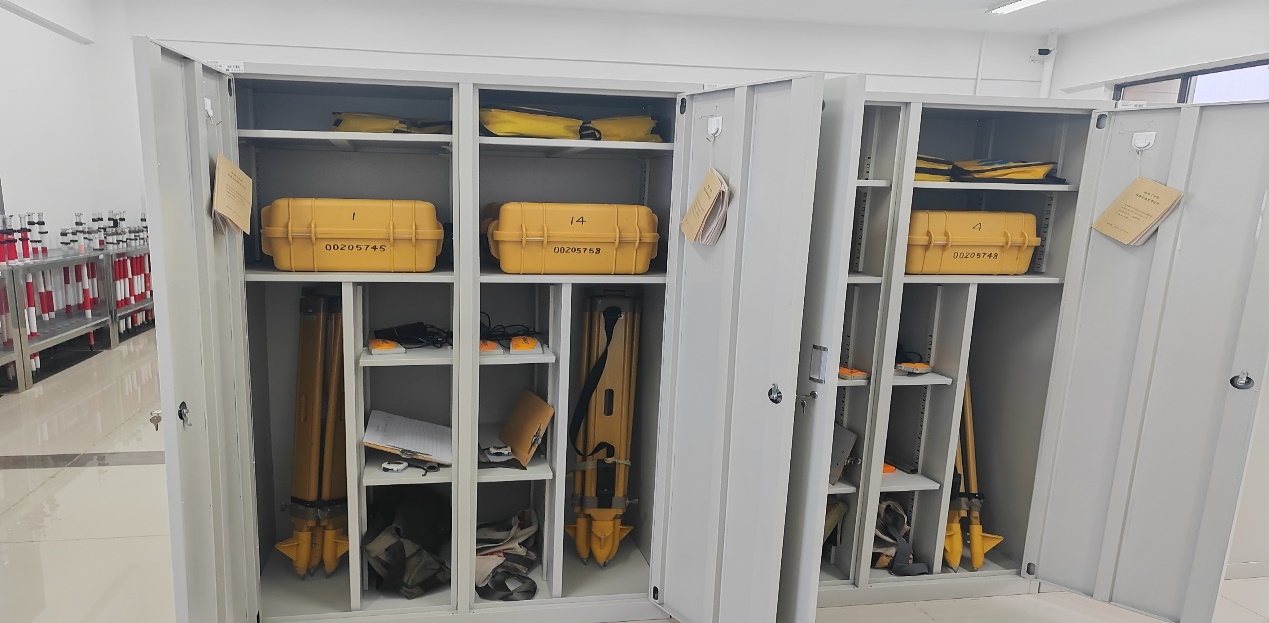 在参观过程中,见证了海测秀人网 先进的测绘仪器和设备。实验室配备了最新的海洋测量设备、全站仪、高精度水准仪、光谱仪、无人测量船和无人机等设备,分设测绘数据处理室、数字摄影测量室、地理信息系统室以及遥感仿真实验室等多个教学室,每个教学室仪器设备都编号明确,摆放整齐,使用记录清晰,每台仪器设备都可以溯源使用者,管理规范严格。其自主设计的仪器存放柜完美的契合了测绘仪器特征,给人留下了深刻印象。其遥感仿真实验室将室外实验完整搬到了室内,大大提高了教学效率以及学生的学习兴趣,是实验室建设一大特色亮点。