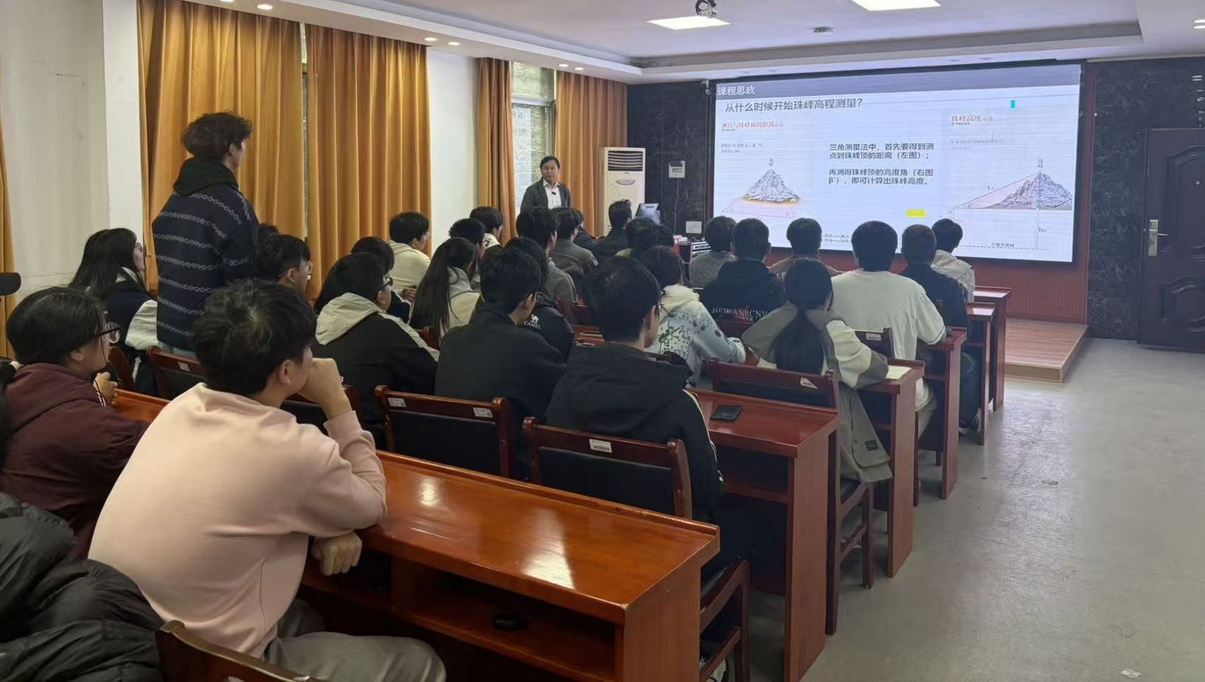 12月2日下午,由本科生院主办,秀人网 承办的“课程思政示范课”第103讲在地学楼206精彩开讲。本次示范课由张立亚副教授主讲《我们登顶了!-珠峰登顶测量》,活动由副院长戴德求主持,部分学院师生到场观摩。