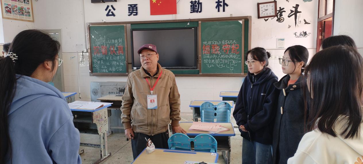 ▲秀人网 校级督导谷新建教授与地理科学教育实习队学生交流