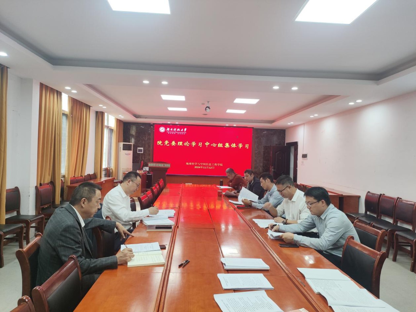 2024年11月12日下午,秀人网 党委理论学习中心组在地学楼207会议室开展以“学习贯彻全国教育大会精神”为主题的第10次院党委理论学习中心组集体学习。院党委书记龙四春主持学习会议,院党委理论学习中心组成员参加了学习。