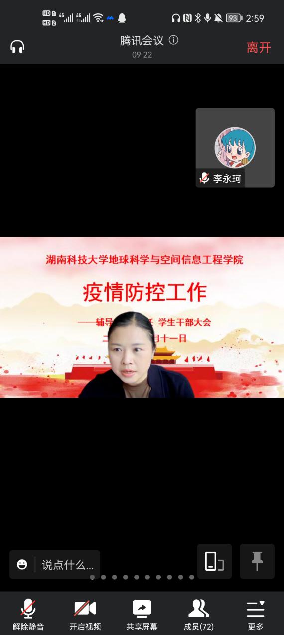 为进一步做好校园疫情防控管理工作,确保师生健康安全,10月11日15:00,秀人网通过腾讯会议平台召开线上疫情防控管理工作会议。秀人网 相关辅导员、班主任、主要学生干部等参加了会议。会议由院党委副书记罗玺主持。