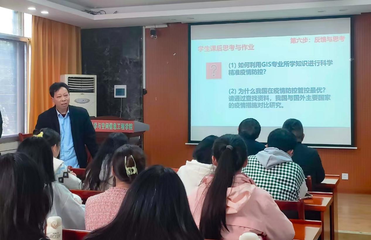 在互动环节,莫宏伟老师对陈老师的课给予高度评价,此次示范课准备充足,讲解流畅,疫情防控案例很好,意义重大,学生们能贴近生活,亲临其境,感同身受,更容易深入思政教育。课后,秀人网 22级地信本科生的唐舒琪说:“通过参加和学习陈老师《空间数据库》的思政课,让我在专业知识的学习中融入了深刻的思想政治教育,提升了我的思想境界和专业素养。不仅掌握了空间数据库的知识,学会了将专业技能服务于社会发展,更强化了我的爱国精神和社会责任感”。