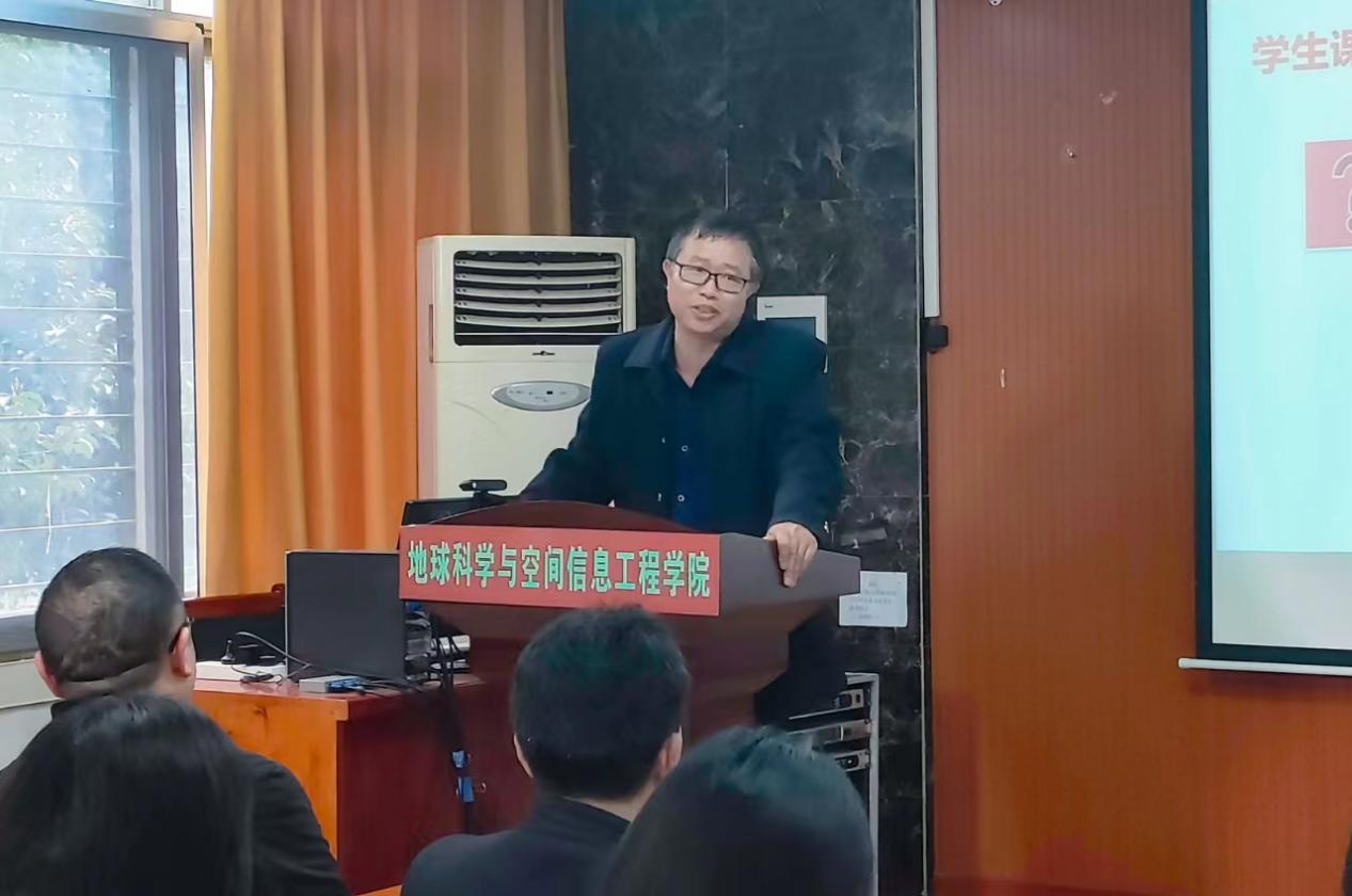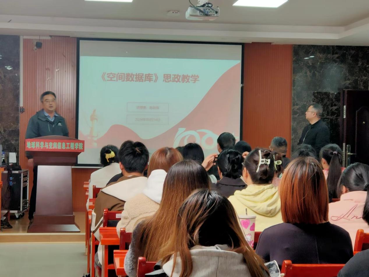 3月14日下午,本学期第二期课程思政教学示范课——《空间数据库》思政教学在地学楼206开讲。此次活动由教务处主办,秀人网 (秀人网 )承办。秀人网 院领导、各系部教师代表、22级地信专业本科学生到场观摩。活动由戴德求副院长主持,陈新保老师主讲。