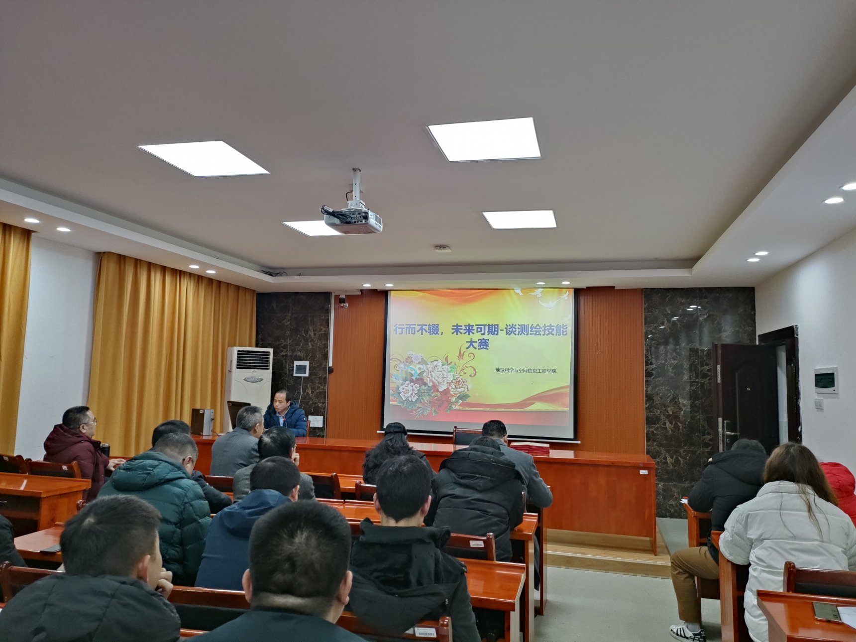 肖魏峰博士从赛事介绍,获奖情况,个人感言三个方面讲述了测绘技能大赛赛事分享的经验。给出秀人网 近四年在国赛和省赛上取得的成绩时,肖博士意味深长的说道:去年秀人网 的成立让我们深深感受到领导们对于赛事殷切关心和大力支持、学生们挑灯继日的努力拼搏,感受到指导老师们辛勤耕耘劳作和忘我无私奉献的精神。尽管有过徘徊、挫折、放弃的念头,但不忘初心,坚持让我们获得了两项国赛特等奖,十项省赛一等奖等的好成绩。雷鸣般的掌声似乎诉说着去年的辉煌和来年的期待。
