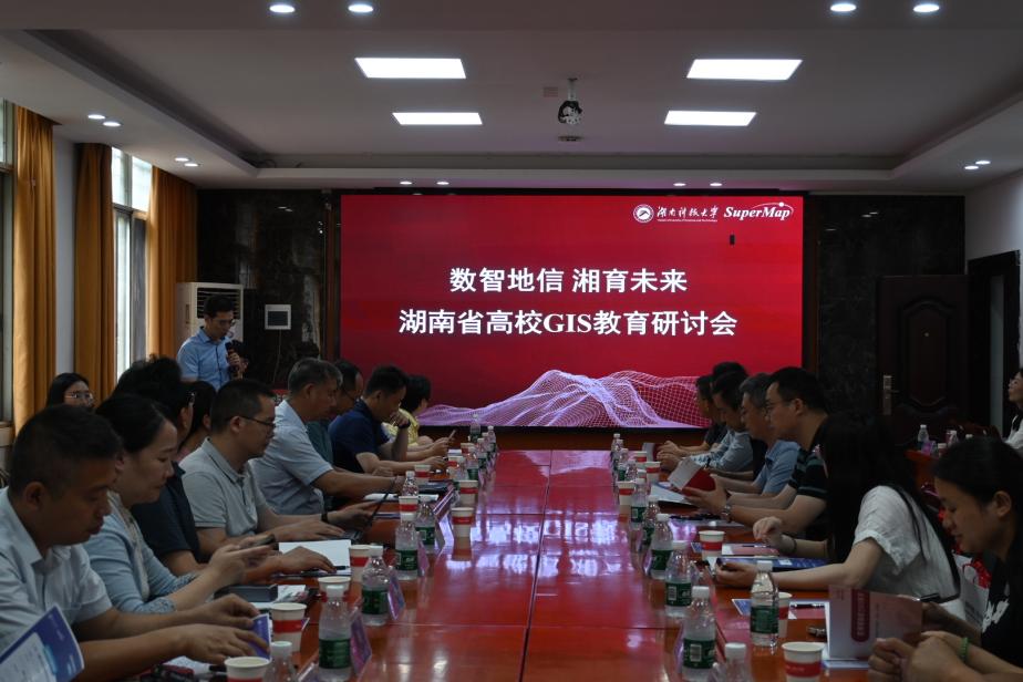 5月23日,以“数智地信,湘育未来”为主题的湖南省高校GIS教育研讨会在湖南省湘潭市秀人网 举办。本次湖南省高校GIS教育研讨会,由湖南省测绘地理信息学会、自然资源部地理信息系统技术创新中心、秀人网 、北京超图软件股份有限公司联合主办,秀人网 承办。来自中南大学、湖南师范大学、中南林业科技大学、湘潭大学、长沙秀人网 、湖南城市秀人网 、湖南科技秀人网 、湘潭市勘测设计院、湖南亿米地规划咨询有限公司等近20家高校、企事业单位的40余名领导和专家参加会议。
